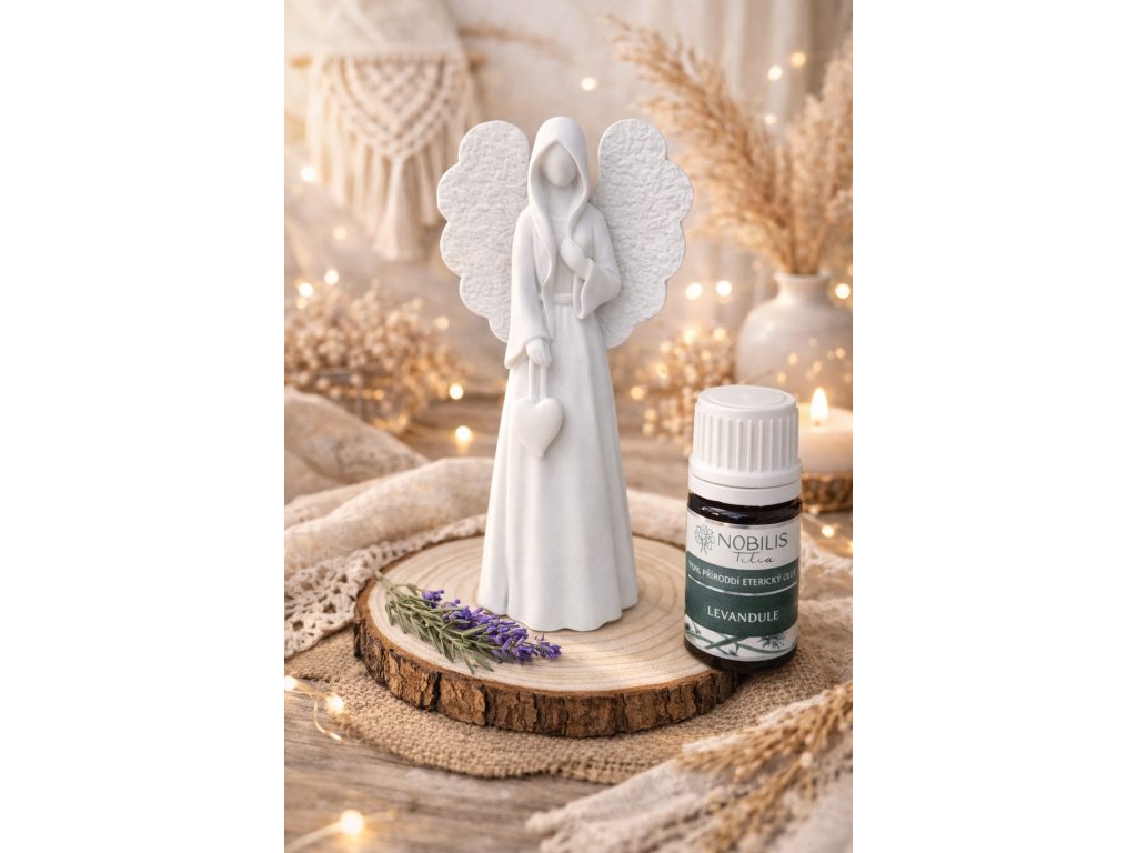 Náš aroma andělíček je jako jemný dotek křídel na vaší duši - uklidňuje mysl, povznáší náladu a vytváří v prostoru atmosféru nebeského klidu. Ideální pro chvíle relaxace, meditace nebo pro vytvoření příjemné atmosféry ve vašem domově.