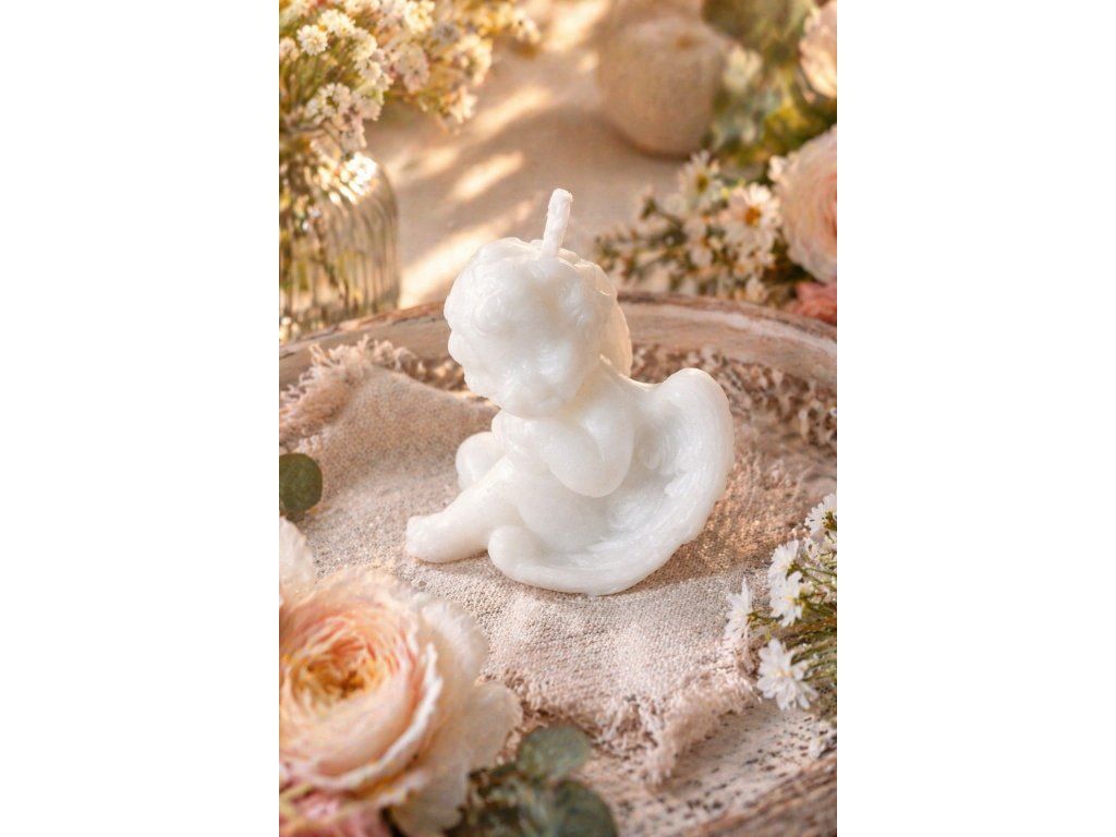 Tato něžná svíčka ve tvaru sedícího andělíčka s rozevřenými křídly v sobě nese víc než jen vosk a knot. Nese poselství – tiché, laskavé a trvalé. Ať ji zapálíte při slavnostní příležitosti, nebo ji jednoduše postavíte na polici jako ozdobu, vždy přitáhne pohled a zahřeje srdce.