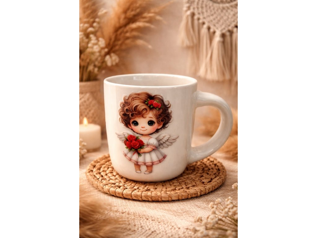 Elegantní bílý keramický hrníček s romantickým andělským motivem se skvěle hodí do útulného domova v boho, přírodním nebo romantickém stylu. Může být nejen praktickým doplňkem, ale také milou dekorací, která navodí pocit klidu, tepla a pohody.