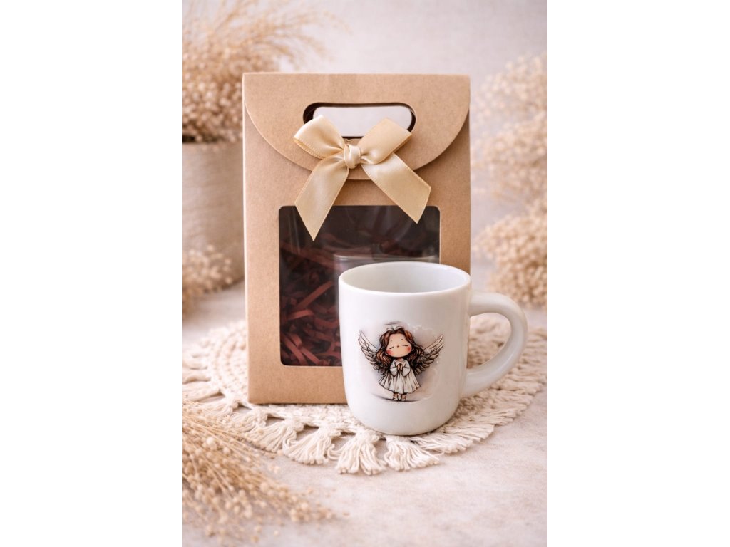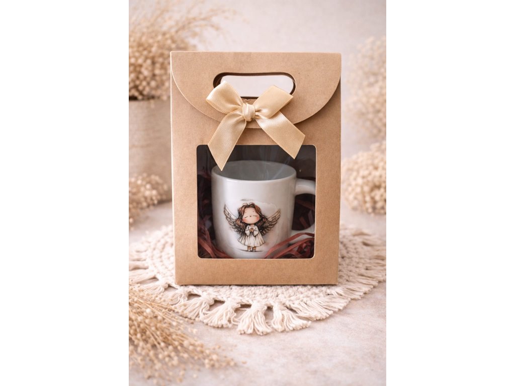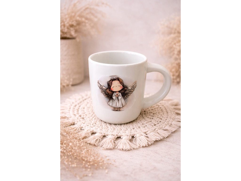 Něžný keramický hrníček s roztomilým andělíčkem potěší každé srdce. Jemná ilustrace anděla v teplých tónech červené a béžové působí láskyplně, klidně a harmonicky. Hrníček je ideální pro ranní kávu, čaj i chvíle pohody, kdy si chcete dopřát ticho a radost.