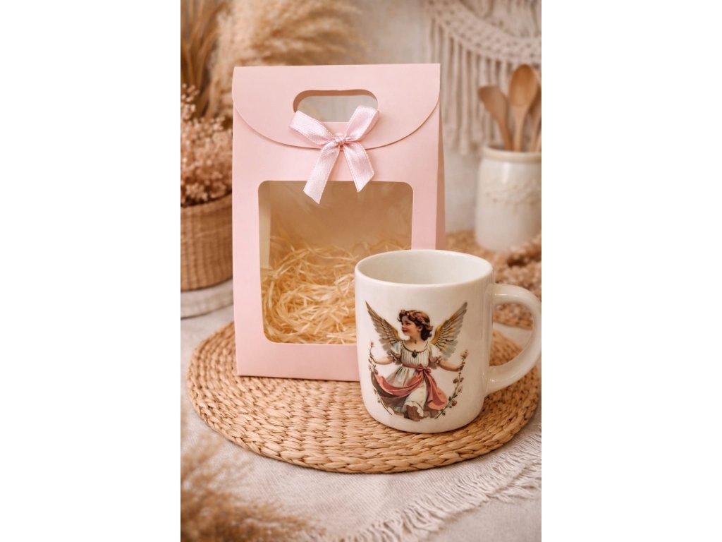 Něžný keramický hrníček s krásným retro motivem andělíčka přináší pocit klidu, harmonie a jemné elegance. Detailní ilustrace andílka s křídly a květinami působí romanticky a nadčasově, a potěší každého, kdo má rád jemný vintage styl.