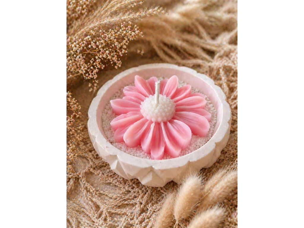 Růžová gerbera v sypkém vosku — svíčka pro ty, kdo milují jemné věci