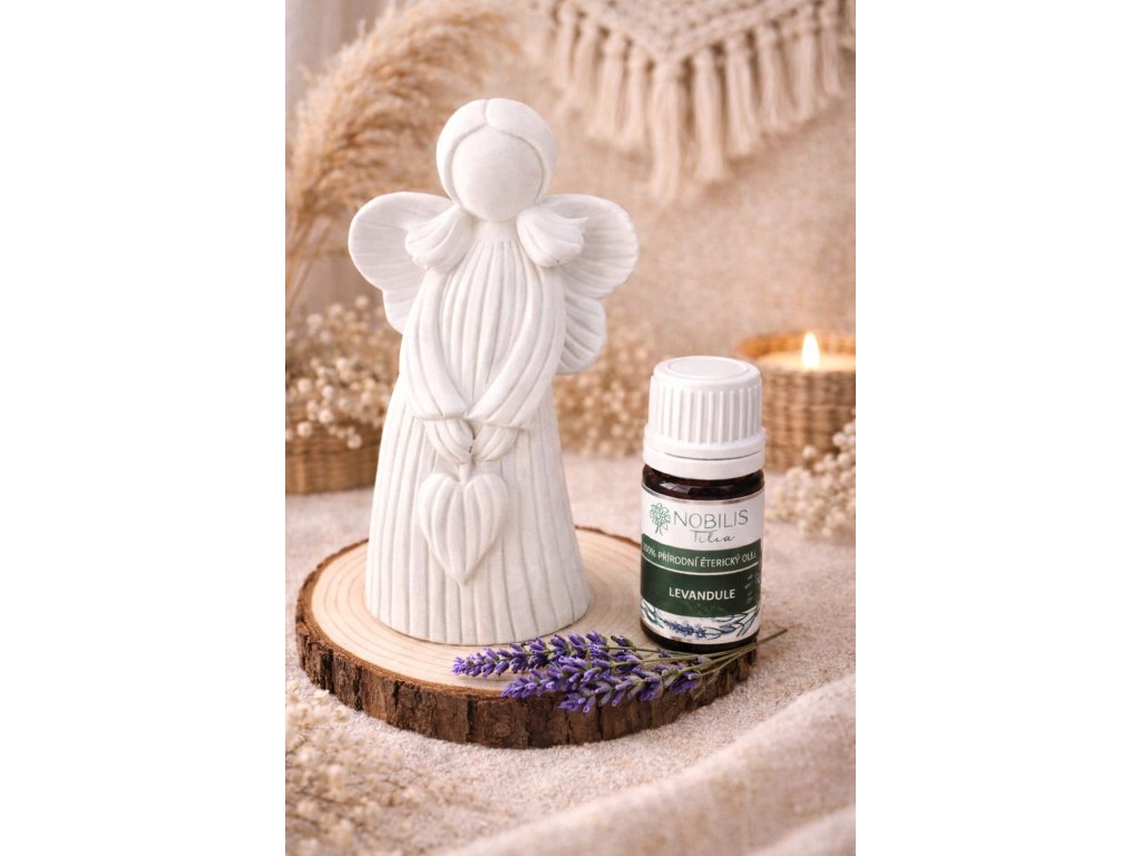 Náš aroma andělíček je jako jemný dotek křídel na vaší duši - uklidňuje mysl, povznáší náladu a vytváří v prostoru atmosféru nebeského klidu. Ideální pro chvíle relaxace, meditace nebo pro vytvoření příjemné atmosféry ve vašem domově.