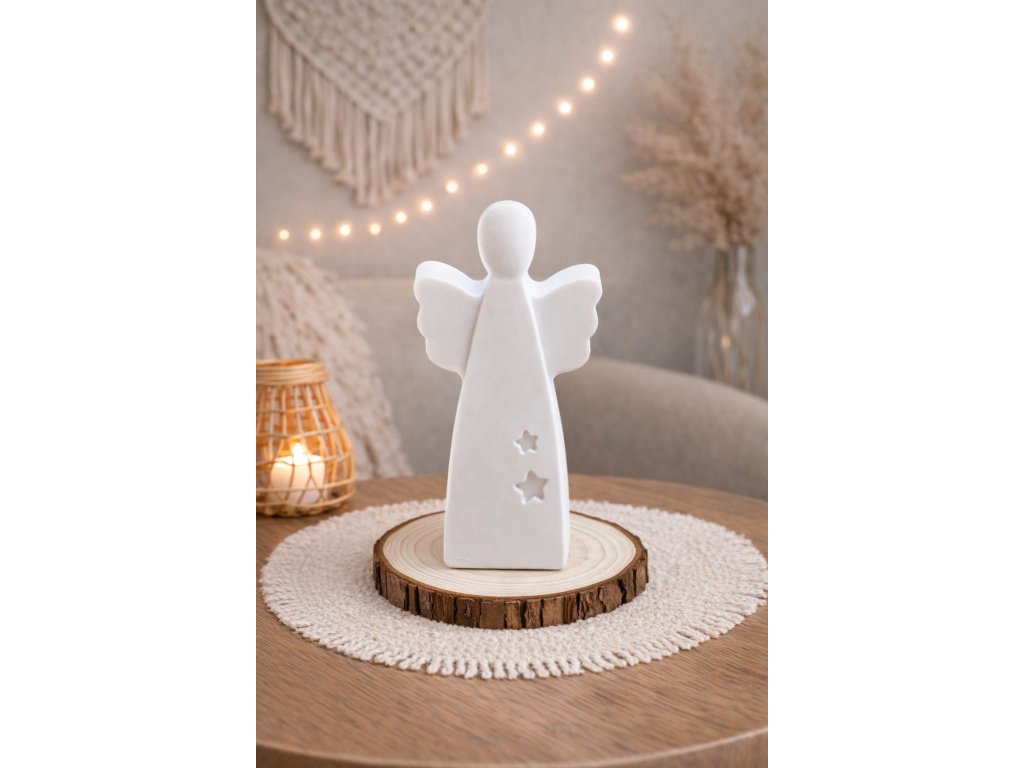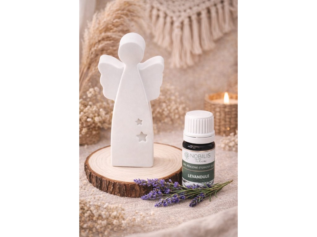 Náš aroma andělíček je jako jemný dotek křídel na vaší duši - uklidňuje mysl, povznáší náladu a vytváří v prostoru atmosféru nebeského klidu. Ideální pro chvíle relaxace, meditace nebo pro vytvoření příjemné atmosféry ve vašem domově.