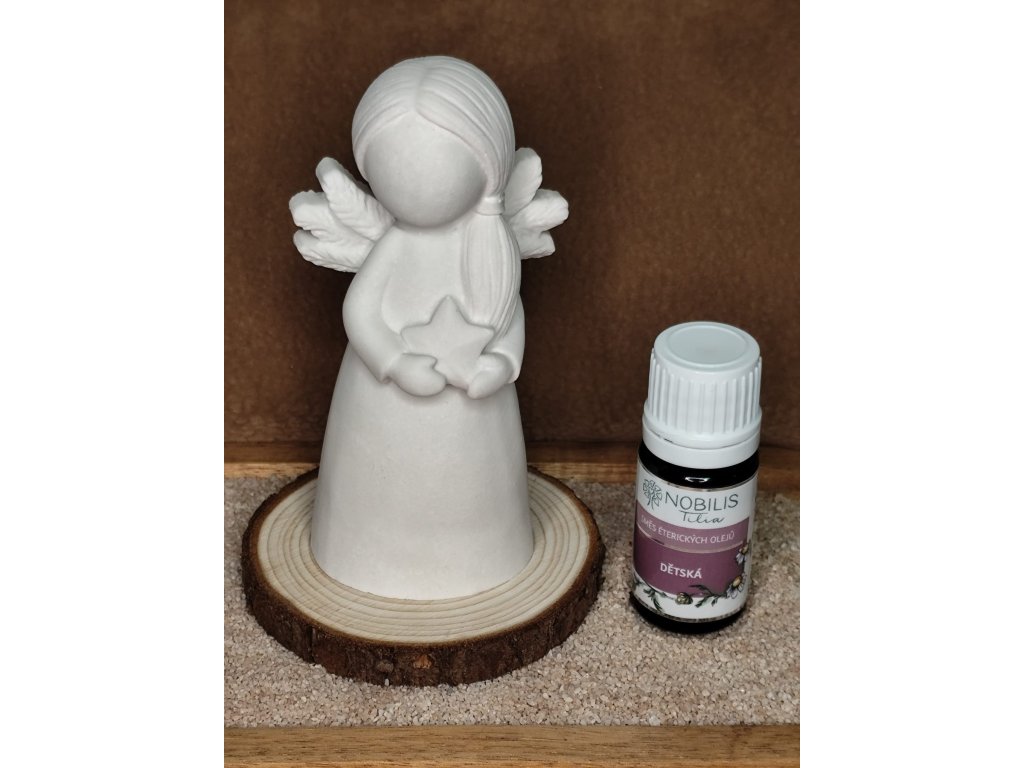 Náš aroma andělíček je jako jemný dotek křídel na vaší duši - uklidňuje mysl, povznáší náladu a vytváří v prostoru atmosféru nebeského klidu. Ideální pro chvíle relaxace, meditace nebo pro vytvoření příjemné atmosféry ve vašem domově.