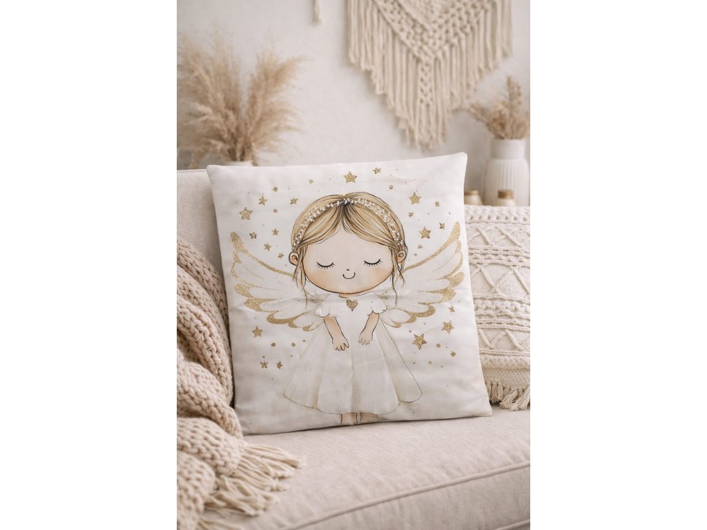 Náš krásný polštářek zdobí motiv anděla - tradičního symbolu ochrany, klidu a harmonie. V mnoha kulturách je anděl považován za strážce, který bdí nad našimi sny a přináší pocit bezpečí.