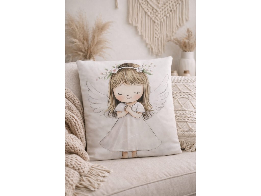 Náš krásný polštářek zdobí motiv anděla - tradičního symbolu ochrany, klidu a harmonie. V mnoha kulturách je anděl považován za strážce, který bdí nad našimi sny a přináší pocit bezpečí.