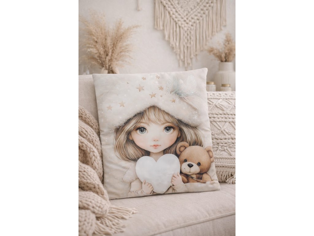 Náš krásný polštářek zdobí motiv anděla - tradičního symbolu ochrany, klidu a harmonie. V mnoha kulturách je anděl považován za strážce, který bdí nad našimi sny a přináší pocit bezpečí.