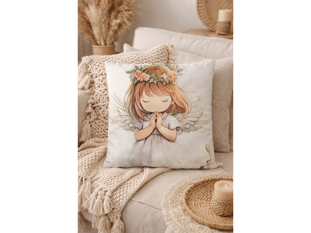 Náš krásný polštářek zdobí motiv anděla - tradičního symbolu ochrany, klidu a harmonie. V mnoha kulturách je anděl považován za strážce, který bdí nad našimi sny a přináší pocit bezpečí.